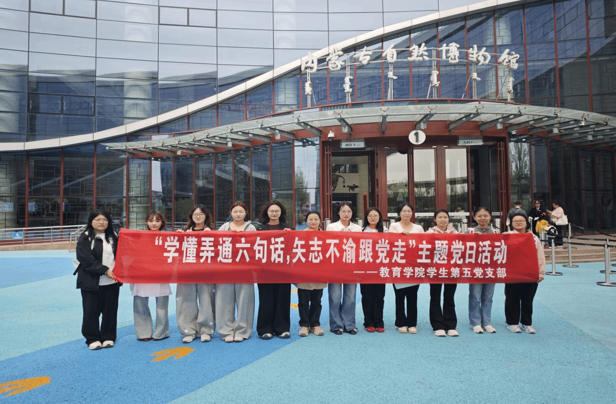 4月25日,教育学院第五党支部组织全体在校学生党员走进内蒙古自然博物馆开展主题教育。在一件件珍贵展品前,大家深切感受着一代代草原儿女在党的领导下书写的奋斗篇章,在触摸历史、感悟精神中进行党性淬炼,进一步筑牢信仰之基、补足精神之钙、把稳思想之舵。