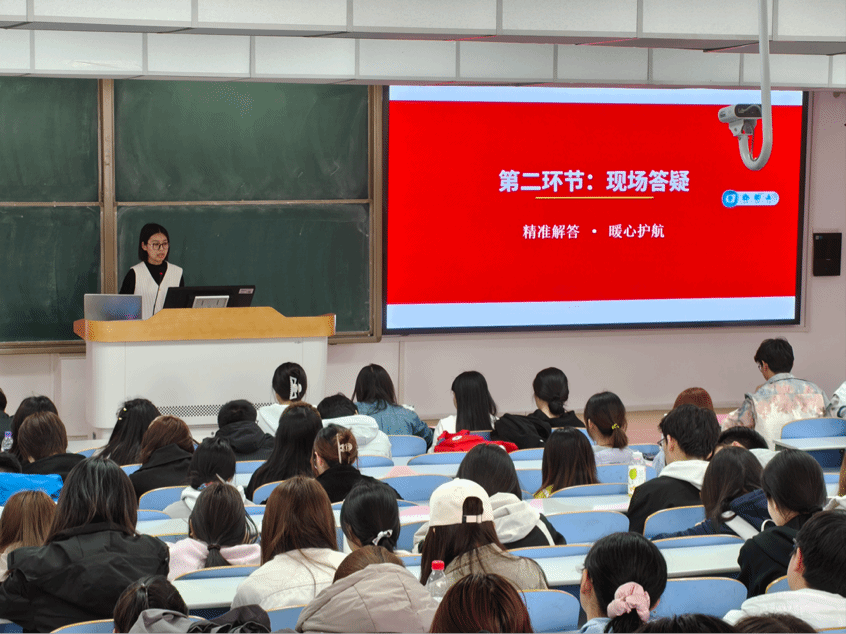 2026年4月1日,教育学院学生第六党支部举办“发挥堡垒作用,宣讲两会精神”主题党日活动,支部全体党员参加了活动准备和现场组织工作。学院团总支组织全体入团积极分子听取了宣讲。王钥、张婧、藏登三名党员同志聚焦全国两会关于教育领域重点部署,立足专业特色,分别围绕教育公平、教师队伍建设、教育科技人才一体化发展等主题开展宣讲。宣讲结束后,支部党员结合自身学习经历与实践经验,就入团积极分子关切的问题逐一进行了细致的现场回应。