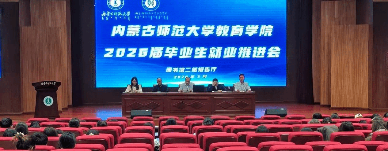 为贯彻学校就业工作部署,进一步推进2026届毕业生就业工作,引导毕业生树立正确的就业观和择业观,帮助同学们理性看待当前就业形势、科学开展职业规划,2026年3月24日晚19点,教育学院于图书馆二楼报告厅召开2026届毕业生就业推进会。教育学院党委副书记、院长赵荣辉,党委副书记、副院长斯琴满都呼,副院长边琦、副院长杨日飞,辅导员王薪宇以及2026届毕业生参加本次会议,会议由党委副书记斯琴满都呼主持。